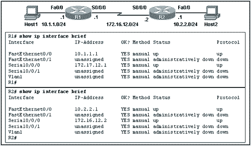 R1(config)# ip route 10.1.2.0 255.255.255.0 192.168.0.2 R2(config)# ip route 10.1.1.0 255.255.255.0 192.168.0.1